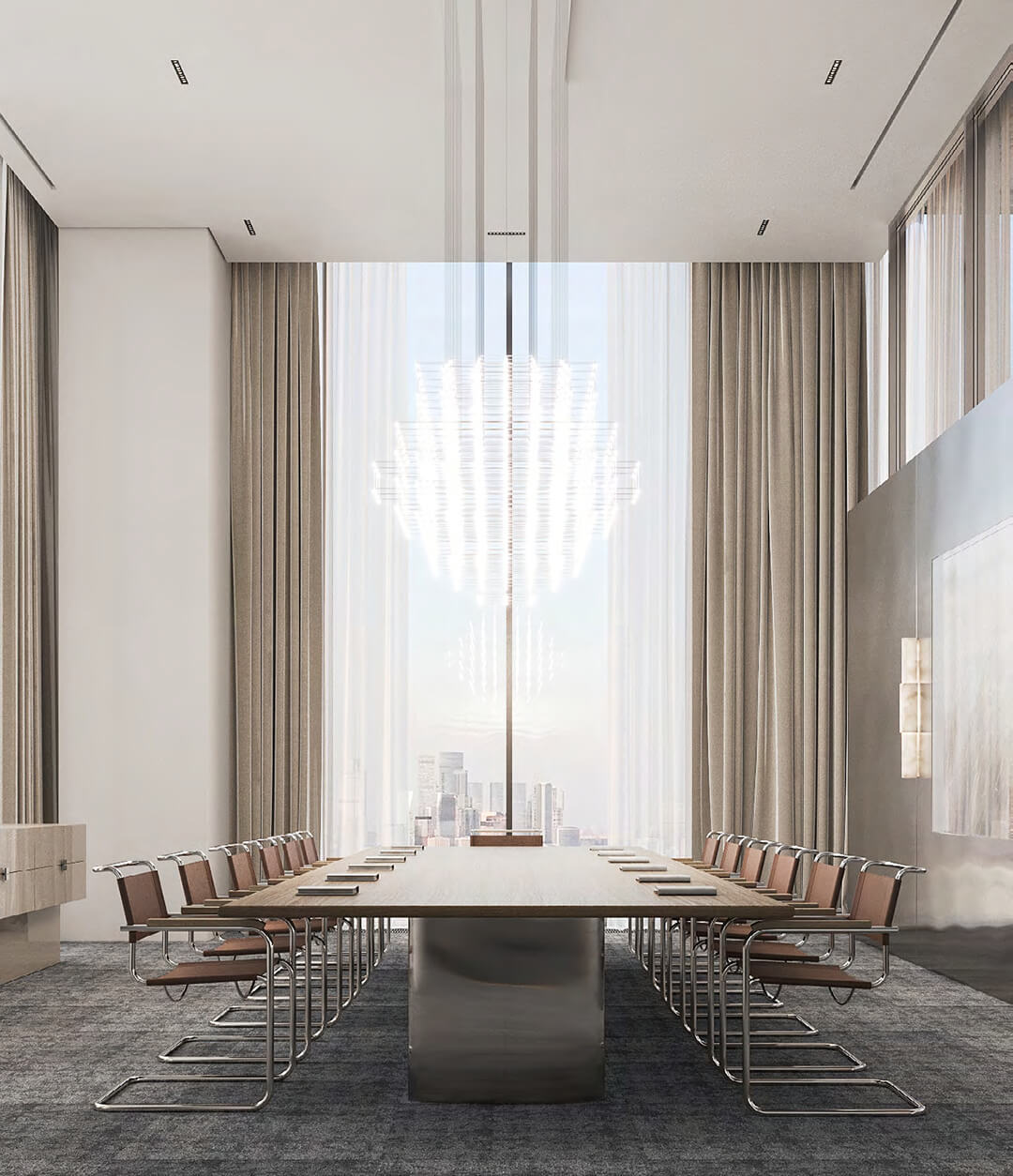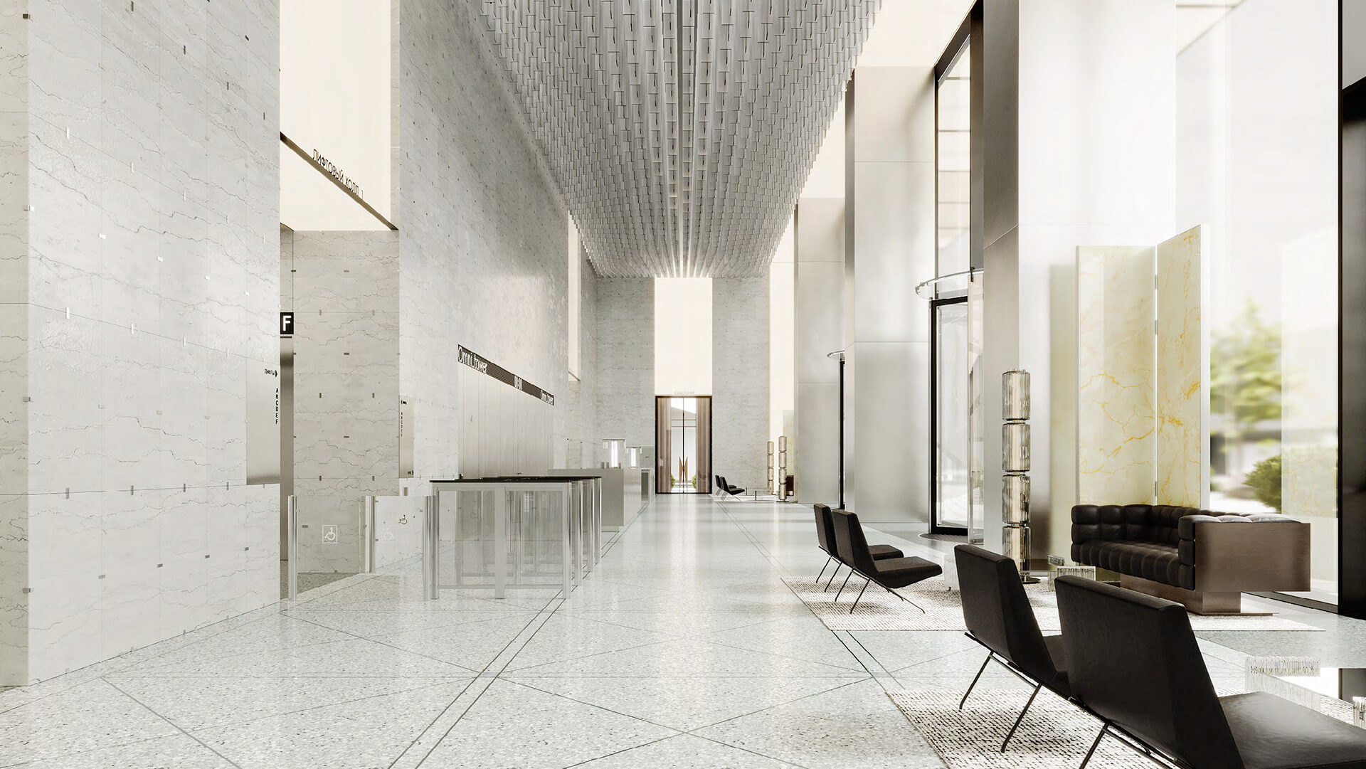 Интерьер лобби сочетает минимализм и комфорт, формируя атмосферу уверенности и статуса. Здесь пространство продумано до мелочей: зоны ожидания, навигация, интеграция природного света — всё создаёт ощущение премиального делового клуба. Архитектура интерьера вдохновлена эстетикой международных флагманов и отражает глобальные тенденции корпоративного дизайна.